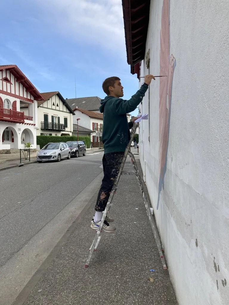 No es fácil llegar a un lugar como Saint Palais, nada familiarizado con las intervenciones en la calle y ponerte a pintar sin más. El proceso debía ser distinto, íntimo y responsable, como cuando te acercas poco a poco y con precaución a algo que desconoces.